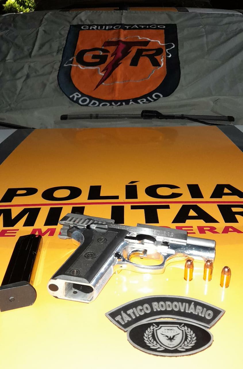 Nessa quarta-feira (23), a Polícia Militar Rodoviária prendeu um homem que estava com uma arma de fogo e munições, após ele passar com um veículo em alta velocidade, na rodovia LMG-760. Ele assumiu a propriedade dos materiais.