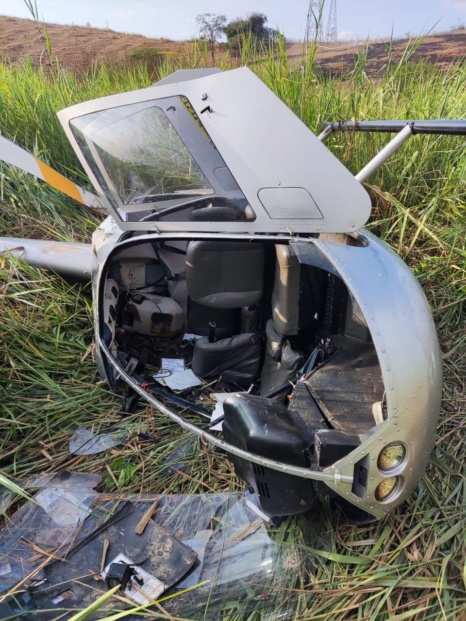 Em um vídeo, que circula nas redes sociais, é possível observar o momento exato em que o helicóptero vai realizar o pouso e bate em um cabo de alta tensão. Em seguida, perde o controle e cai. Também nas imagens é possível ver bastante fumaça na área da queda da aeronave e ambulâncias.