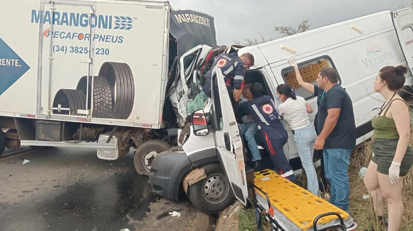 Na tarde desta quinta-feira (24), um grave acidente entre uma ambulância da Prefeitura de Vazante e um caminhão carregado de pneus deixou cinco mortos na BR-354, a cerca de 14 km de Presidente Olegário, no Noroeste de Minas Gerais. A colisão ocorreu quando o motorista da ambulância tentou uma ultrapassagem e bateu de frente com o caminhão que vinha no sentido contrário, segundo a Polícia Militar Rodoviária (PMRv).
