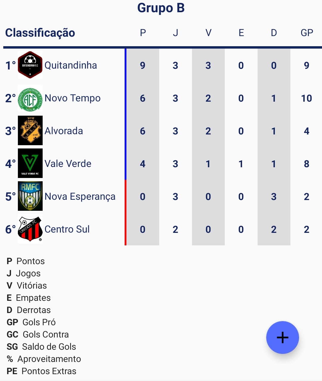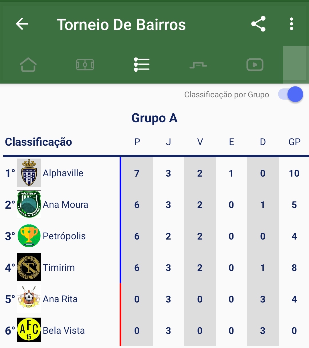 Confira abaixo a tabela de classificação dos grupos A e B