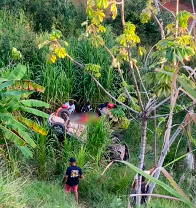 Em seguida, o automóvel teria invadido a contramão e capotou, caindo fora da pista, em uma ribanceira de aproximadamente 15 metros, às margens da rodovia. O Corpo de Bombeiros foi acionado para atender as vítimas.