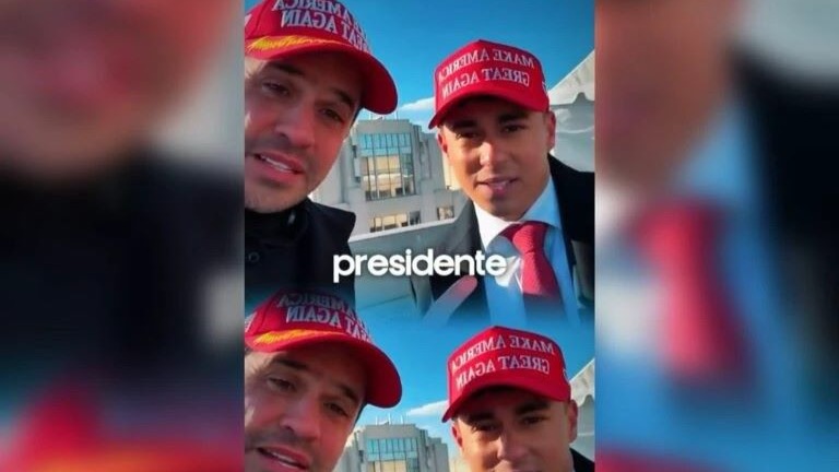 Empresário e deputado participaram da posse de Donald Trump e usaram bonés com slogan republicano.