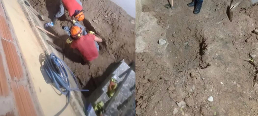 . Diante da situação, a corporação acionou o Corpo de Bombeiros, que localizou o corpo da mulher enterrado.