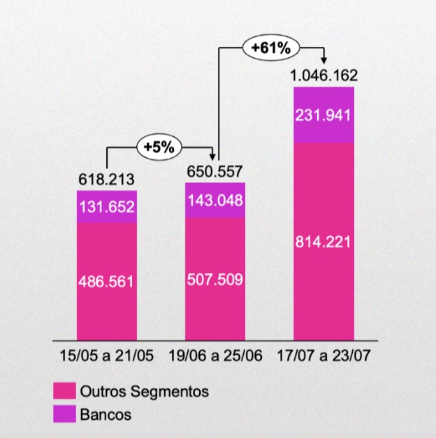 Escolhida por alguma das principais instituições financeiras do país como canal parceiro para negociação de parte das dívidas disponibilizadas no contexto da Faixa II do programa do Governo Federal, a Serasa registrou um aumento de 70% na regularização de contas nos primeiros sete dias da iniciativa governamental comparada com o mesmo período de maio e 61% em relação a junho, quando os números já vinham sendo impactados pelo debate do tema.
