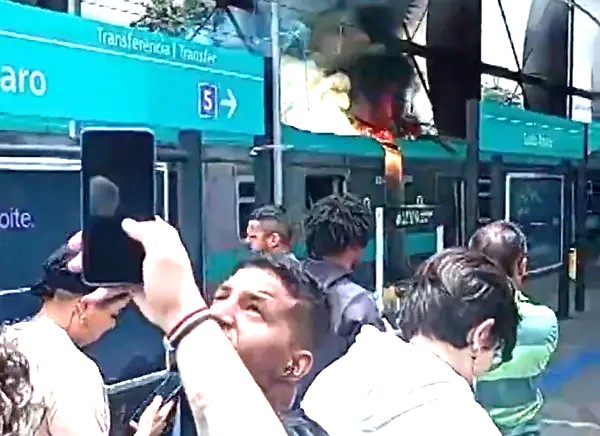 Vídeos gravados por passageiros mostram o momento em que o fogo no trem provoca uma pequena explosão no teto do veículo. As cenas destacam a gravidade do incidente, embora a empresa tenha reforçado que os danos foram contidos rapidamente.