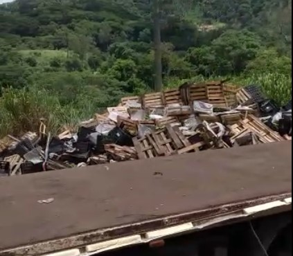 A carga do veículo ficou completamente espalhada no acostamento. A Polícia Rodoviária Federal (PRF) foi acionada para conduzir a ocorrência.