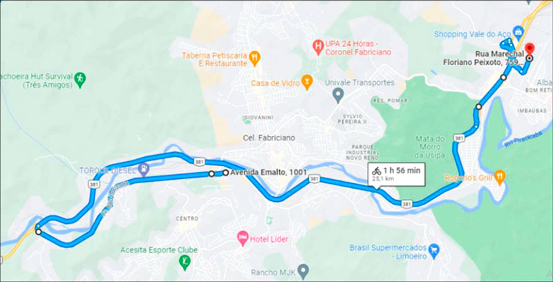 A peça seguirá para Ipatinga, passando pelos bairros: Horto, Industrial (Shopping Vale do Aço), acessando a Avenida Amazonas, mais conhecida como Estrada das Lavadeiras, e a avenida Marechal Floriano Peixoto, no Pátio das Transportadoras.