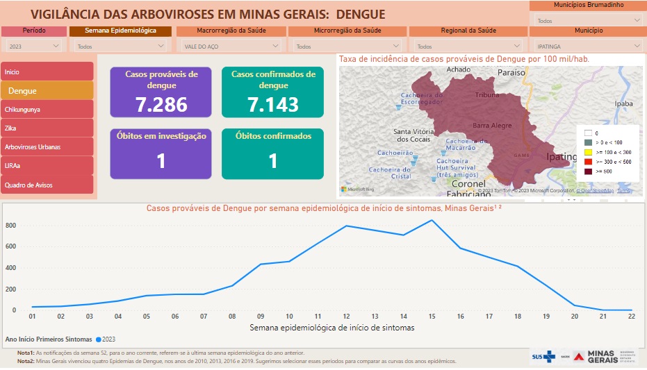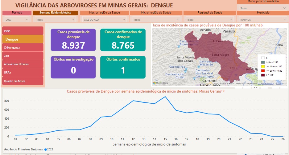 Ipatinga também lidera o número de casos de dengue com 8.765 notificações, mais da metade dos casos registrados em toda macrorregião do Vale do Aço, que chega a 15.496.