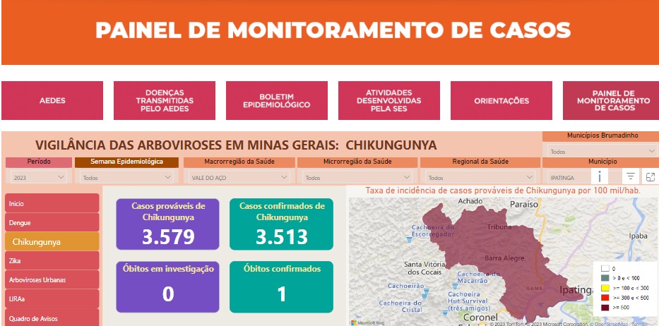 A cidade concentra quase 90% dos casos da doença na Macrorregião do Vale do Aço. Conforme os indicativos do painel de monitoramento de casos disponibilizado pela Saúde, em toda a região há 3.987 casos de Chikungunya confirmados e somente em Ipatinga são 3.513, o que equivale a 88.11%.