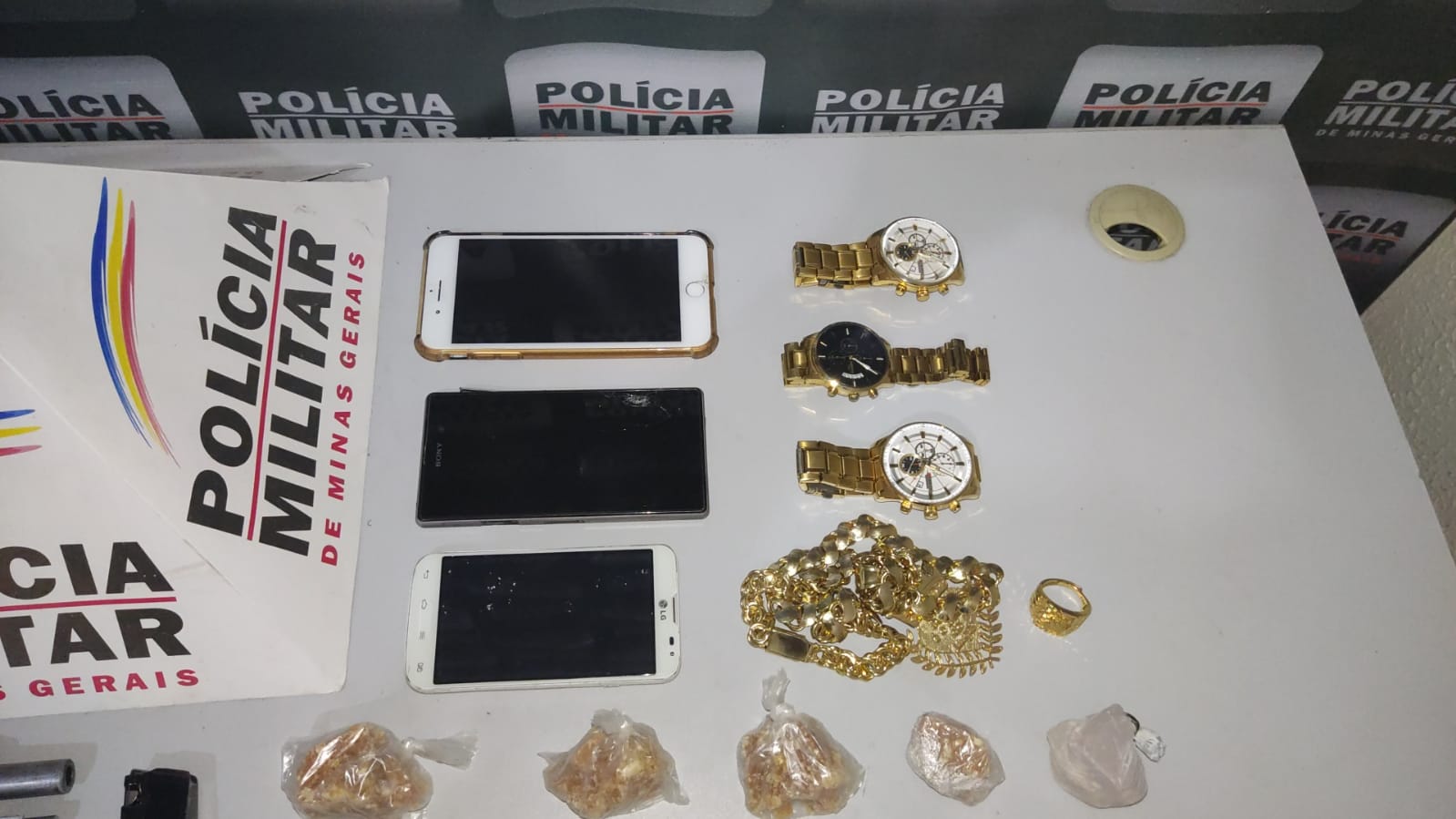 Como era de conhecimento da PM que o homem era o autor das informações passadas, se deslocaram até a residência do indivíduo. Após abordar o local e serem liberados para que pudessem entrar na casa, foram encontrados e apreendidos os seguintes materiais: