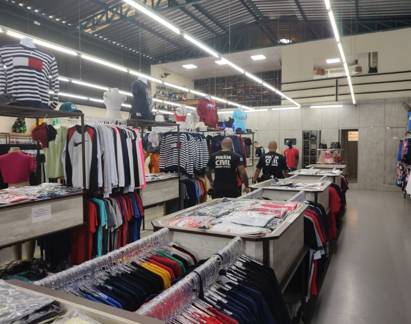 Ao todo, foram expedidos seis mandados de busca e apreensão para recolhimento das roupas e arrecadação de provas para a investigação. Nos alvos dos mandados, os policiais civis localizaram expressiva quantidade de peças com suspeita de falsificação, além daquelas que deram origem à denúncia.