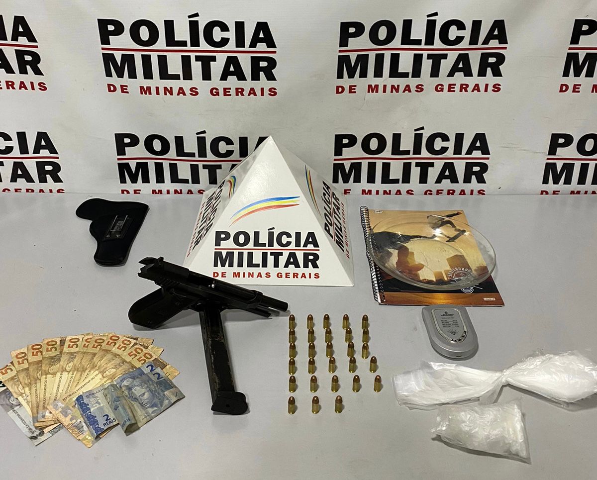 Os policiais foram ao local para verificar a denúncia e realizaram buscas no imóvel. Durante os trabalhos, os militares encontraram: uma pistola Taurus 380; 28 cartuchos intactos calibre .380; R$ 754; um prato de vidro com resquícios de material branco, análogo à cocaína; diversas sacolinhas plásticas, comumente utilizadas para acondicionar entorpecentes; um caderno com anotações semelhantes à contabilidade de tráfico de entorpecentes; uma balança de precisão; um carregador/municiador de pistola calibre .380 e um coldre preto para arma de fogo.