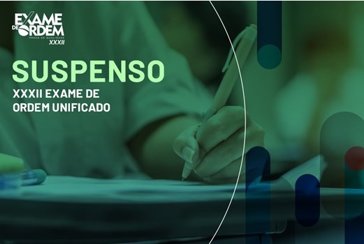 A Diretoria do Conselho Federal da Ordem dos Advogados do Brasil comunica aos examinandos do XXXII Exame de Ordem Unificado (EOU) que está suspensa a realização da prova objetiva, inicialmente marcada para o dia 7 de março de 2021, sem data prevista para aplicação.