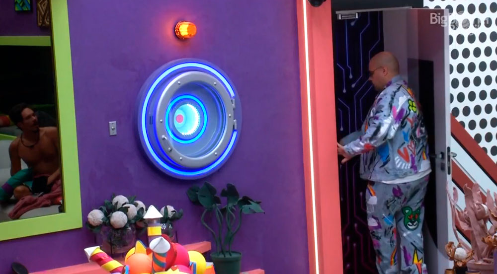 Tiago apertou o botão, a sirene começou a tocar e os outros participantes, que estavam na sala, local onde fica o botão, aparentam ficar desesperados, vendo a situação. Tiago entrou no confessionário logo após apertar o botão.