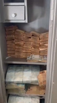 Vídeo mostra as cédulas encontradas no cofre dentro de uma casa no Norte de Minas