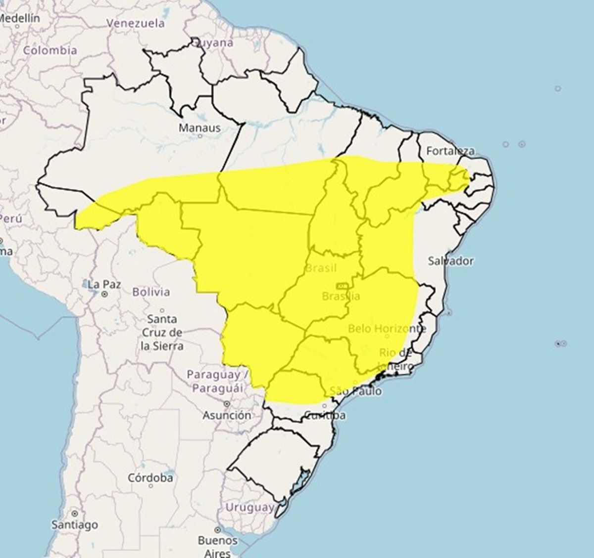 Paralelamente ao frio, diversas regiões enfrentam baixa umidade. O Instituto Nacional de Meteorologia (Inmet) emitiu um alerta de perigo potencial para 10 estados e o Distrito Federal, abrangendo as regiões Sul, Sudeste, Centro-Oeste, Norte e Nordeste. A umidade relativa do ar nessas áreas varia entre 20% e 30%.