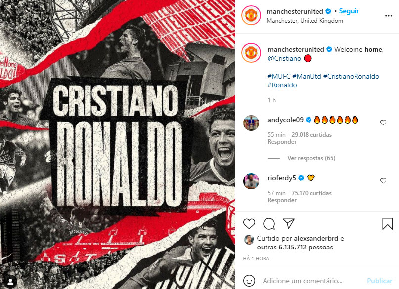 Cristiano Ronaldo estava na Juventus-ITA e essa será a segunda passagem do jogador pelo Old Trafford, estádio do United, chamado carinhosamente pelos torcedores de “Teatro dos Sonhos". O apelido pegou nos torcedores justamente na época da primeira passagem de Ronaldo no clube inglês, quando o time conseguiu feitos históricos e grandes viradas.