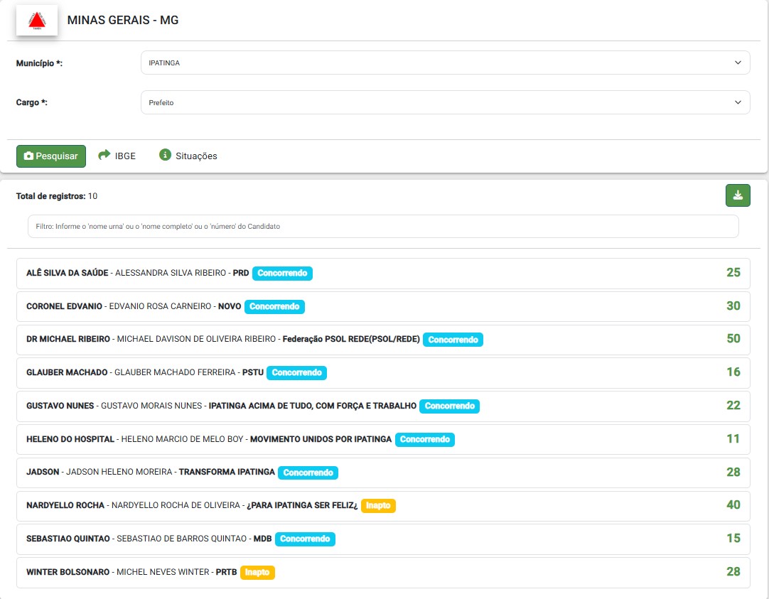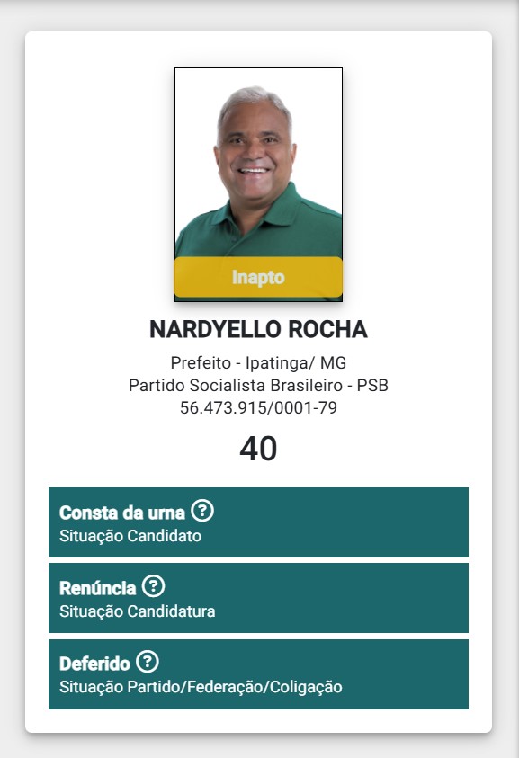 No site do Tribunal Superior Eleitoral (TSE), o nome de Nardyello já consta como inapto.