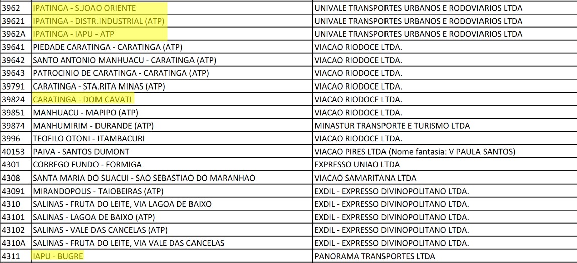 As linhas intermunicipais de caráter urbano que terão gratuidade estão listadas no documento disponível neste link. Os horários e itinerários podem ser consultados no site do DER-MG.