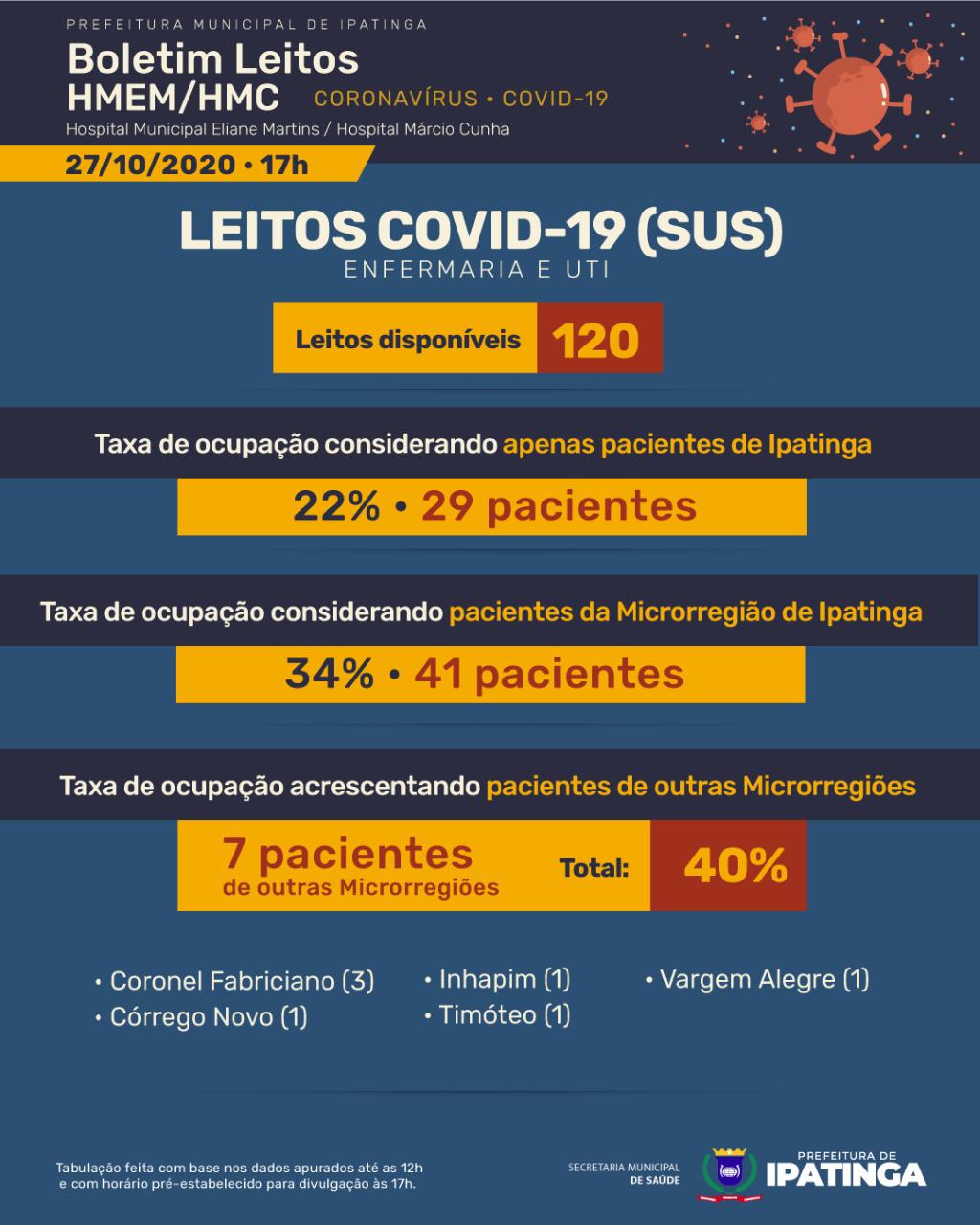 A Prefeitura de Ipatinga confirmou, nesta terça-feira (27), mais um óbito decorrente de complicações por Covid-19. A vítima é um homem de 88 anos, que morava no bairro Vila Celeste.