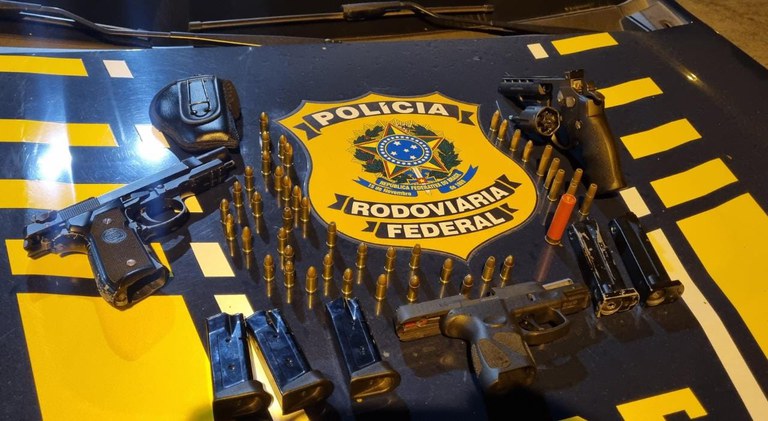 A Polícia Rodoviária Federal (PRF) apreendeu 3 armas de fogo, munições e carregadores no km 355 da BR-381 em João Monlevade, na região central de Minas Gerais. Dois indivíduos foram detidos na operação.