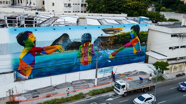 Em uma tarde surpreendente na cidade de Niterói, o artista urbano Eduardo Kobra revelou seu mais novo mural em um dos muros do Hospital Universitário Antônio Pedro. Com um tamanho impressionante de 35,14 metros por 7,90 metros, a obra de 277,60 metros quadrados retrata crianças brincando na água, em uma das praias da cidade.