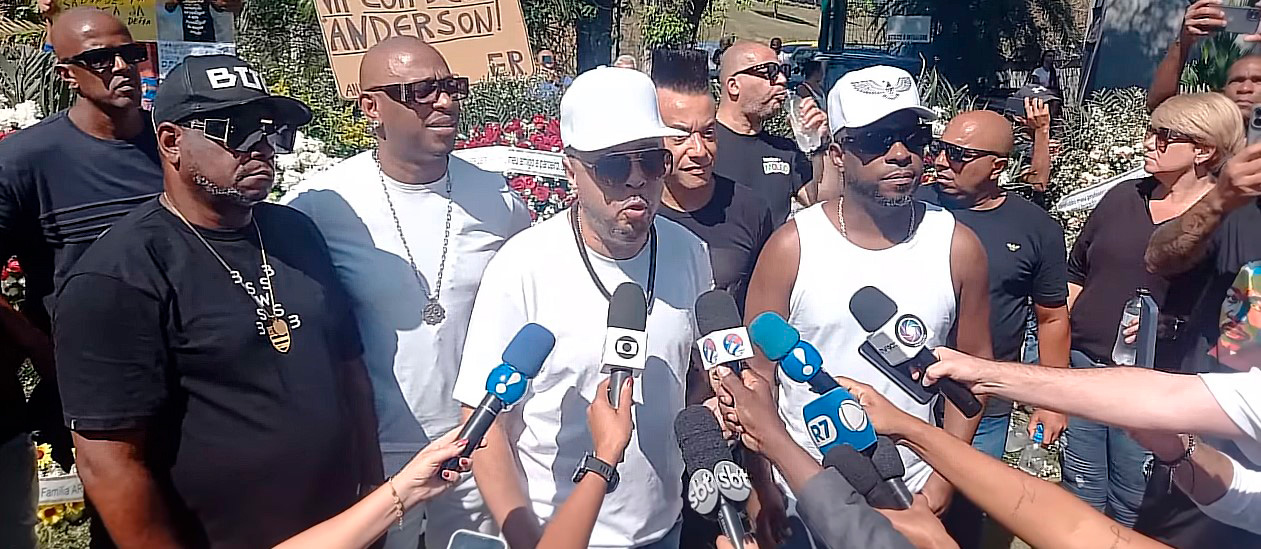 Os colegas do Grupo Molejo concederam entrevista coletiva no cemitério. Eles destacaram a alegria de Anderson mesmo diante das adversidades.