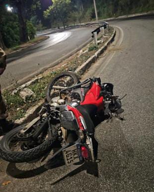 A guarnição policial atendeu a ocorrência e encontrou uma motocicleta Honda XRE 300 vermelha caída no solo. O condutor já havia sido socorrido pelo SAMU antes da chegada dos militares.