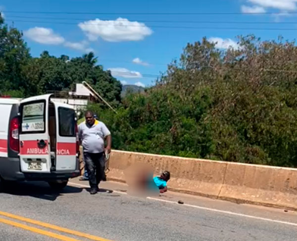 Um adolescente teve a perna esmagada e sofreu uma fratura exposta em um acidente com uma carreta, no viaduto do rio Suassuí, entre as cidades de Mathias Lobato e Frei Inocêncio, no Leste de Minas Gerais. O menor estava de bicicleta, “pegou carona” e foi atropelado pelo caminhão.