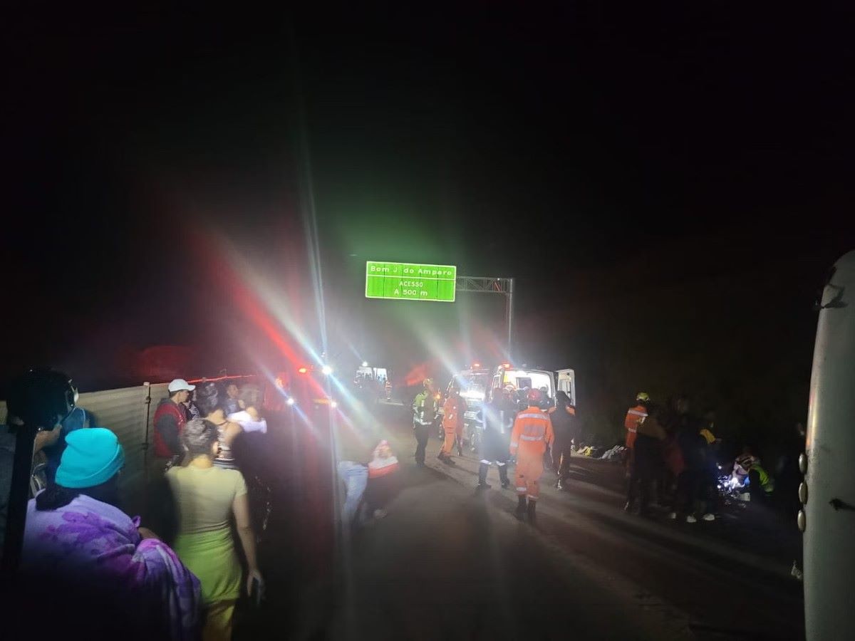 Um grave acidente envolvendo um ônibus com 51 pessoas ocorreu na noite de sexta-feira (28 de dezembro) na BR-381, em Bom Jesus do Amparo, região Central de Minas Gerais. O veículo tombou por volta das 22h20, deixando 20 pessoas feridas, de acordo com o Corpo de Bombeiros.