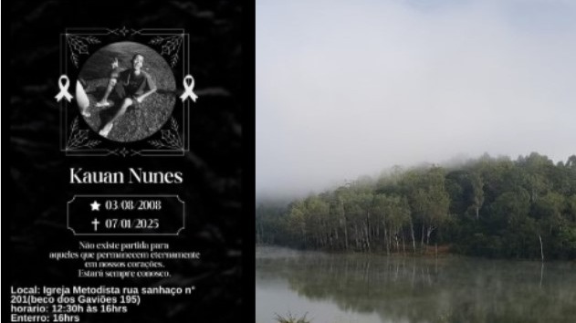 Kauan Nunes, de 16 anos, faleceu após se afogar na Lagoa do Pau; cerimônia será na Igreja Metodista do Vale do Sol.