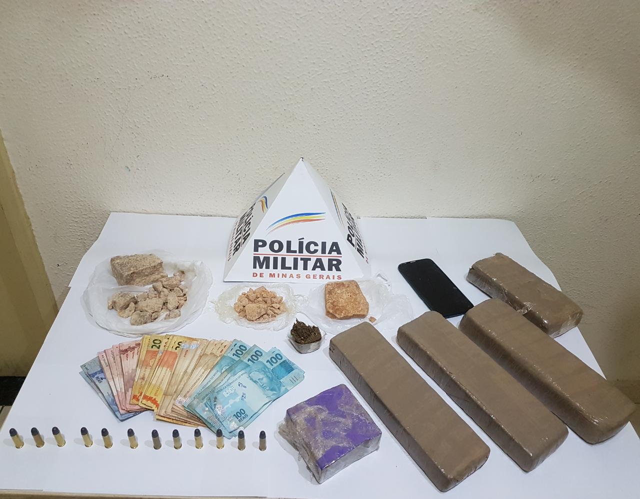 Após a prisão dos envolvidos, os policiais estiveram na residência do denunciado, onde encontraram o restante do material apreendido. Ao todos na operação, os militares apreenderam: cinco barras e um tablete de substância análoga à maconha; 12 cartuchos intactos calibre .38; um aparelho celular Samsung cor azul; três porções de substância análoga a crack e R$ 5.226,00 em moeda corrente.