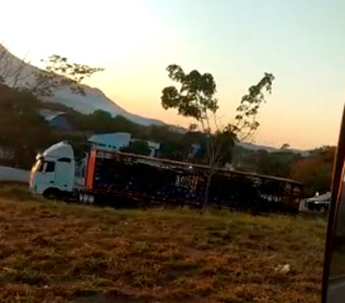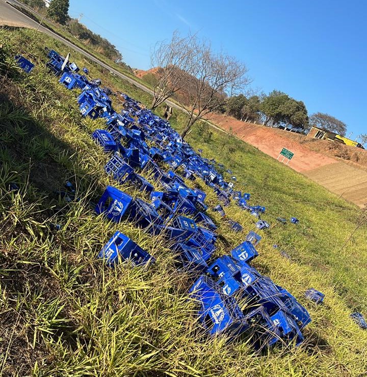 Segundo informações preliminares, o caminhão não chegou a tombar na rodovia, apenas parte da carga de cerveja que caiu da parte de carga às margens da rodovia, na rotatória de acesso ao bairro Distrito Industrial.