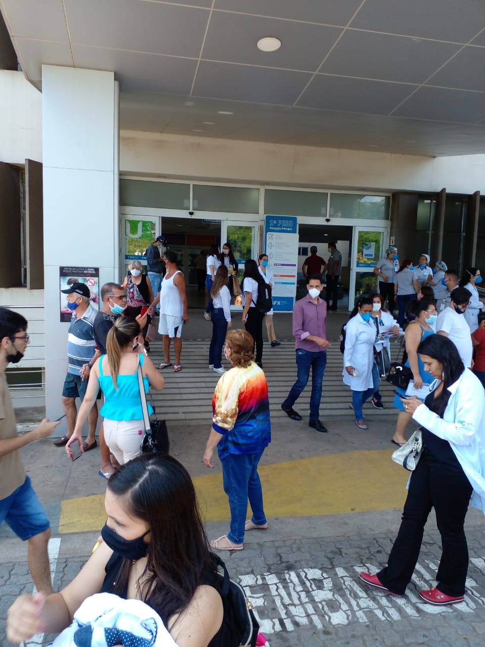 Imagens que circulam pelas redes sociais mostram os pacientes e colaboradores saindo da área e aguardando no estacionamento.
