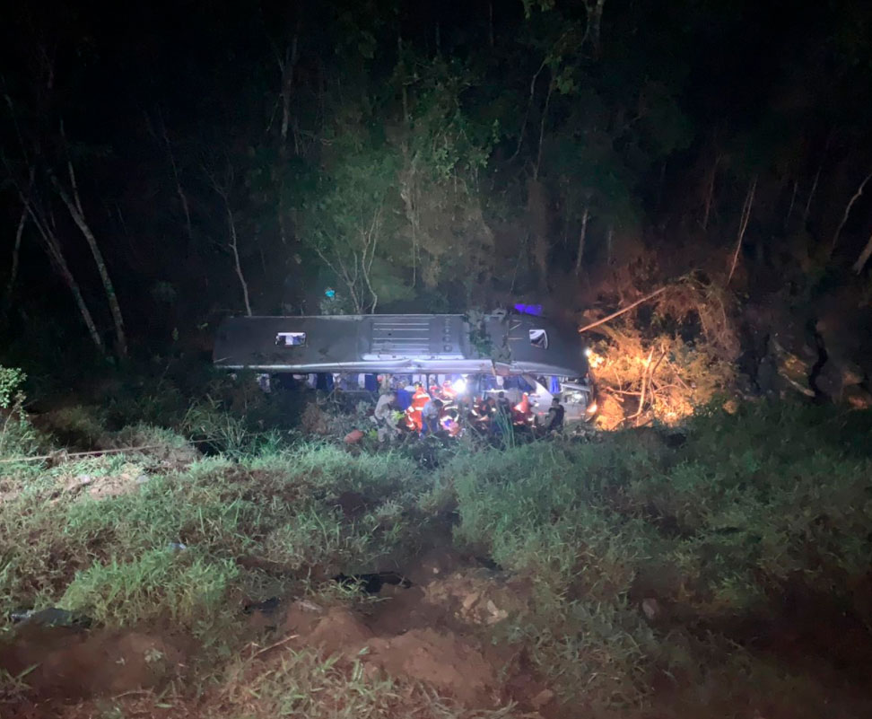 No acidente desta quarta-feira, duas pessoas morreram e 34 ficaram feridas após um ônibus cair em uma ribanceira. Segundo informações da Polícia Rodoviária Federal (PRF), o condutor do ônibus relatou ter sofrido um mal súbito e perdido o controle do veículo, que caiu de uma altura aproximada de 60 metros.