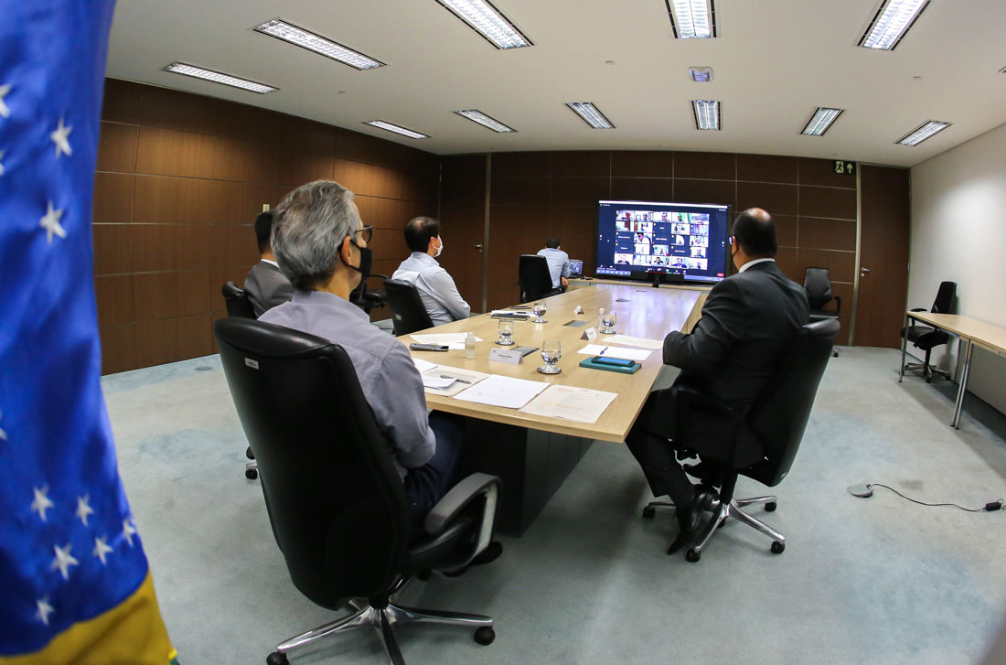 Os secretários de Estado de Governo, Igor Eto, de Saúde, o médico Fábio Baccheretti, e o secretário-geral, Mateus Simões, também participaram da reunião com os prefeitos.