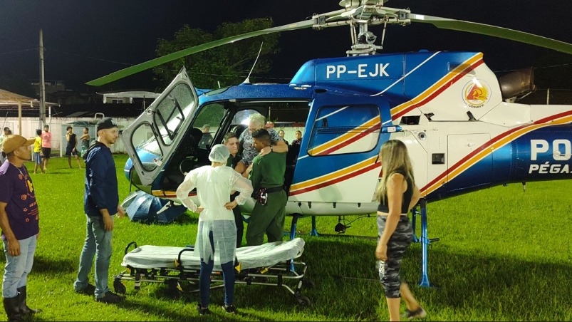 Operação foi realizada pela Defesa Civil e 5ª Brave para salvar moradora com problemas de saúde em área rural