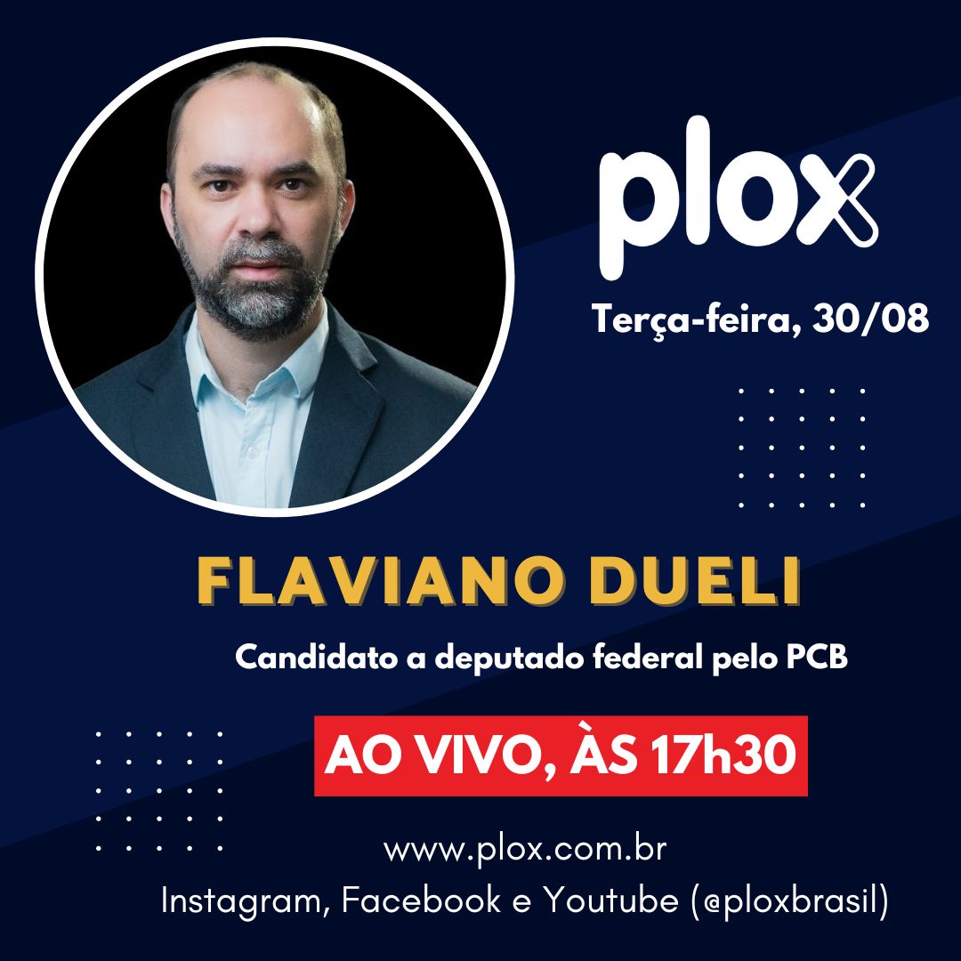O candidato a deputado federal, Flaviano Dueli (PCB), é o entrevistado das 17h30, desta terça-feira (30), na Plox. Flaviano, de 38 anos, é natural de Timóteo e atua como advogado. Segundo o candidato, ele é militante assíduo na defesa dos trabalhadores e das trabalhadoras.