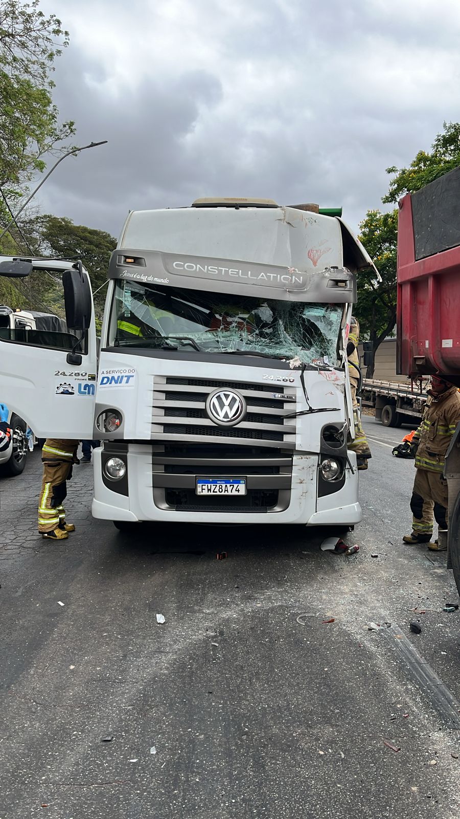 Colisão entre caminhões na BR 381 mobiliza equipes de resgate em Ipatinga