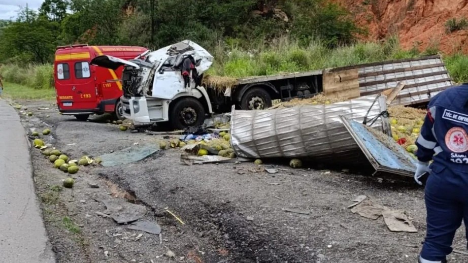 Caminhão carregado de melancias tombou em Sabará no início dessa semana; suspeitos foram flagrados com dinheiro enquanto a vítima permanecia na cabine.