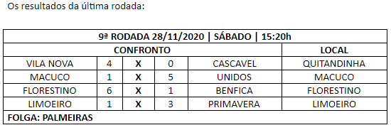 A nona rodada do torneio garantiu a equipe do Florestino a última vaga das semifinais para na disputa pelo caneco da temporada mais atípica do futebol acesitano em função da pandemia do coronavírus. Os finalistas são equipes com longo histórico tradicional como Vila Nova, que já conquistou o torneio por seis vezes, e Florestino, carinhosamente conhecido como o “Gavião da Colina”; e equipes com histórico mais recente e que representam a nova geração do futebol amador local: o Unidos, que terminou com a melhor campanha na fase classificatória, e o Cascavel, que traz a representação das comunidades do setor 6 da cidade, especialmente do Bairro Novo tempo.