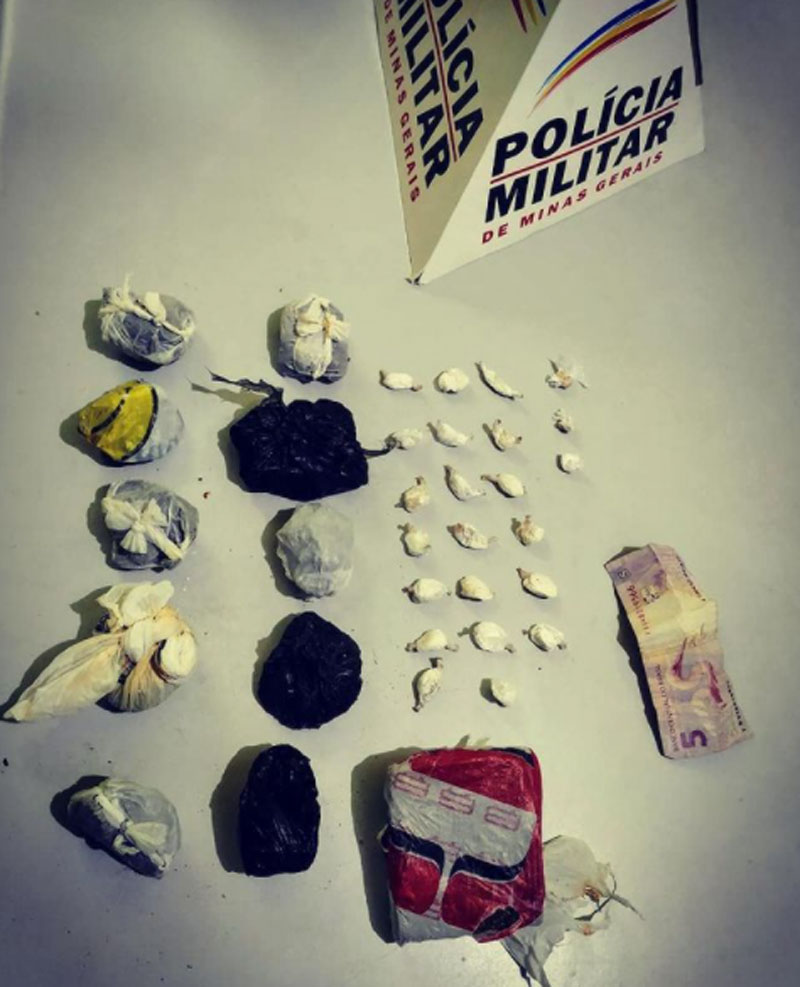 De acordo com a PM, com o auxílio da Ronda Ostensivas Com Cães Adestrados (ROCCA) foram localizados 20 papelotes de cocaína, três pedras de crack, 11 buchas de maconha e R$ 5,00 em dinheiro.