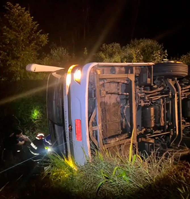 Conforme as informações da Polícia Rodoviária Federal (PRF) no Paraná, das 55 pessoas que estavam no ônibus, 22 ficaram feridas. Quatro corpos foram encontrados embaixo do ônibus.