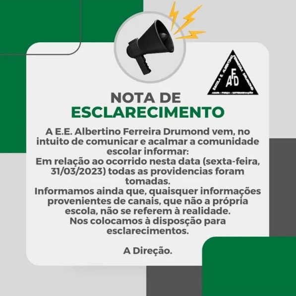 A escola divulgou uma nota em sua rede social informando que “todas as providências foram tomadas”.