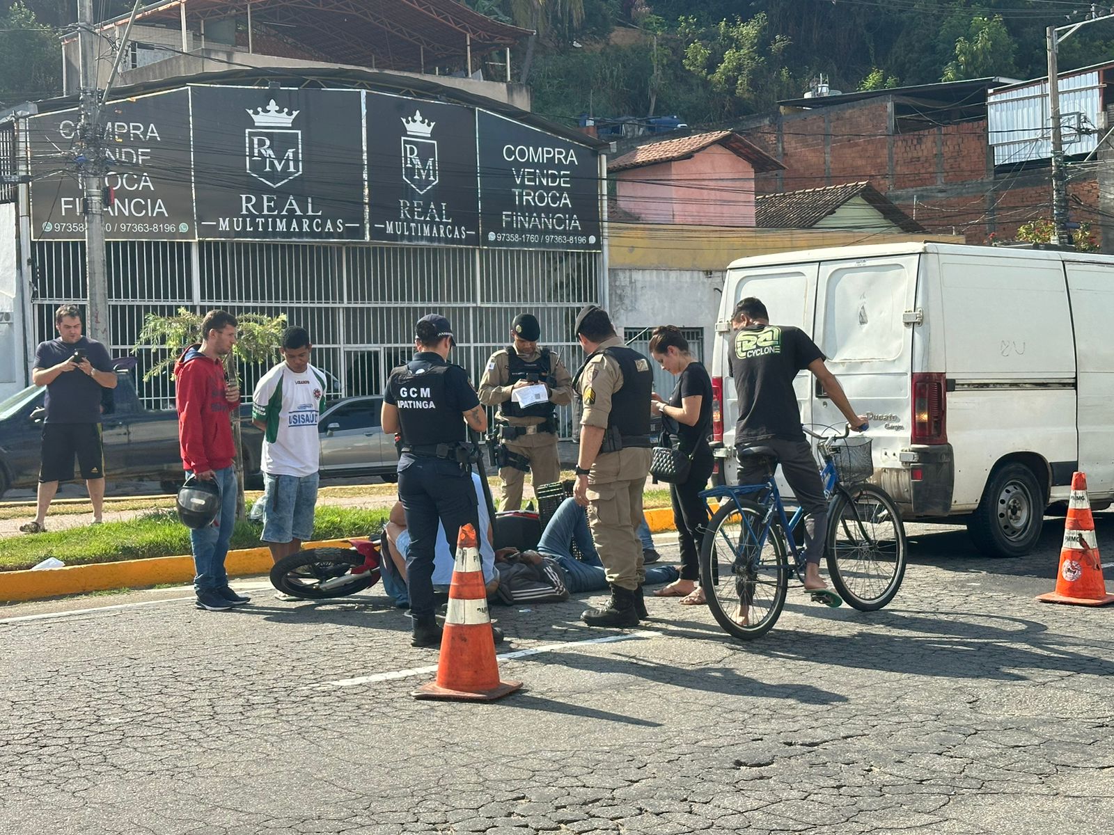Na tarde desta sexta-feira (31), um homem ficou ferido após colidir sua moto vermelha na traseira de uma van branca na Avenida Juscelino Kubitschek, no bairro Jardim Panorama, em Ipatinga.