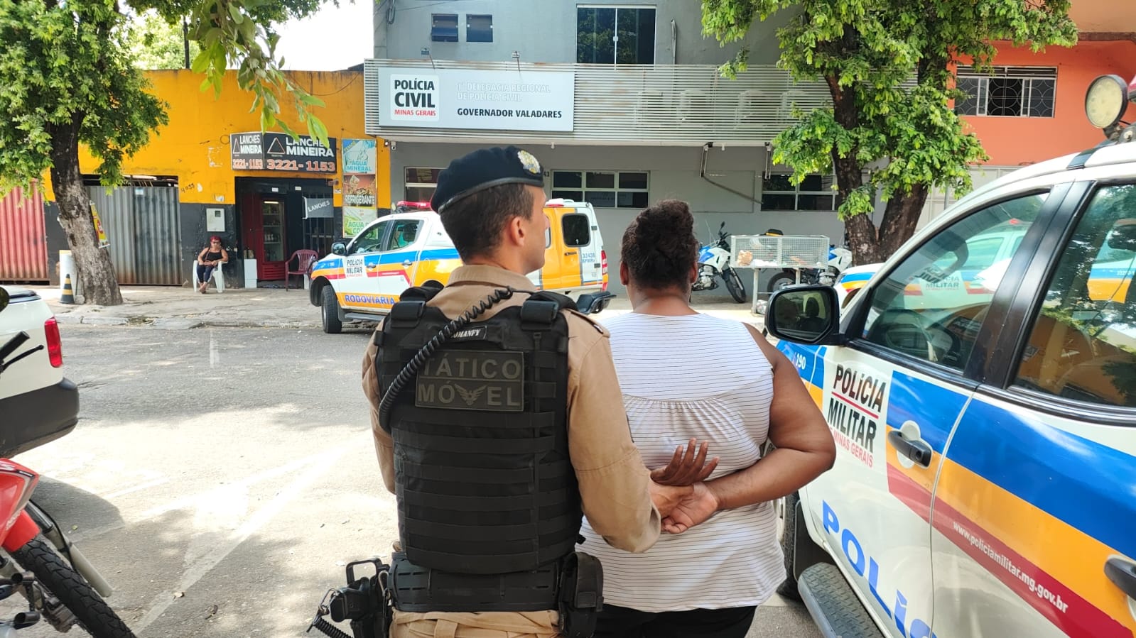 A mulher recebeu voz de prisão em flagrante e foi encaminhada à Delegacia de Polícia Civil, para providências.