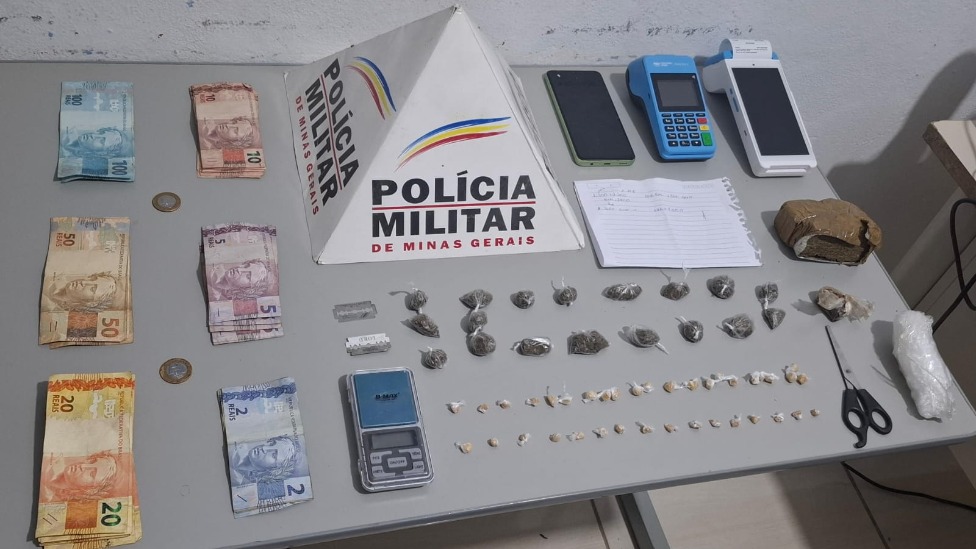 Suspeitos foram detidos com drogas, dinheiro e materiais usados no comércio ilícito; mulher confessou que continuaria no crime