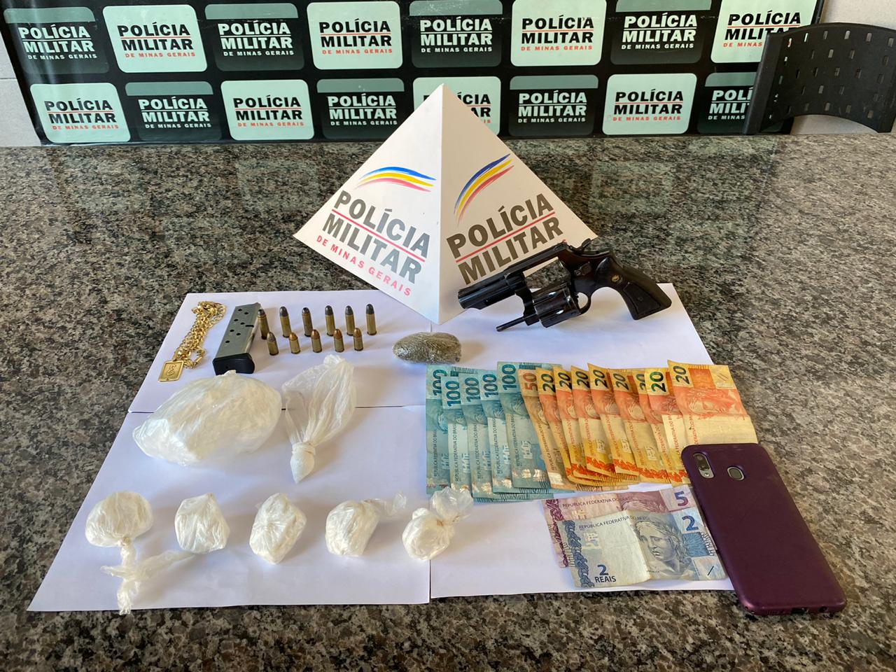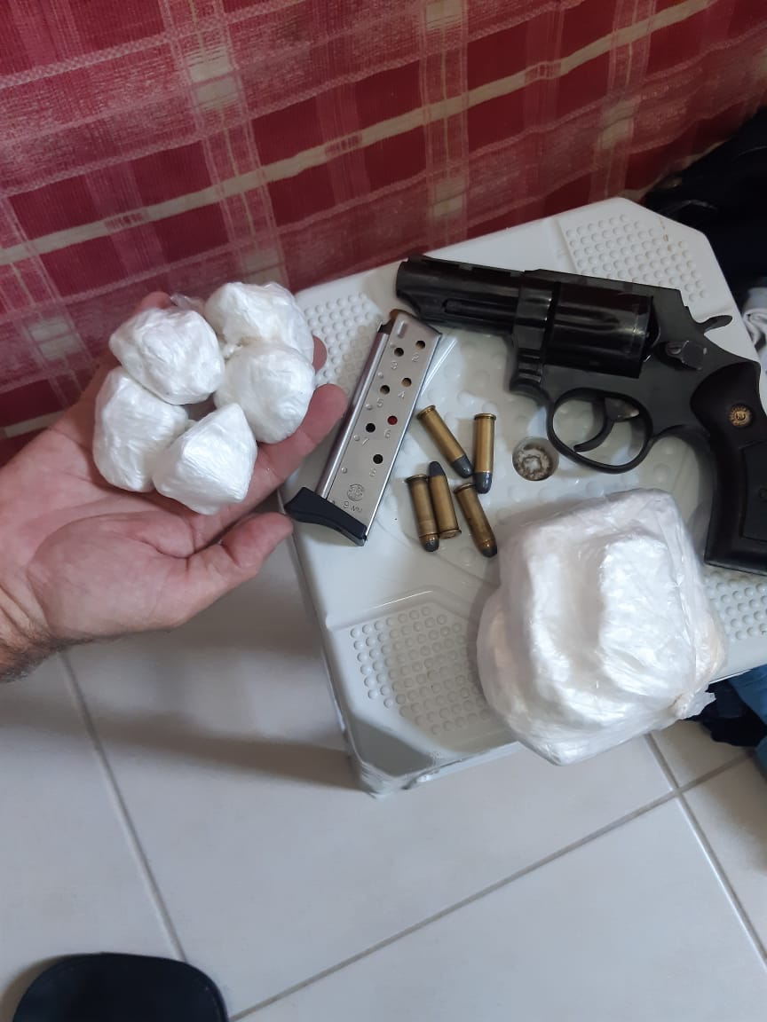 Polícia Militar localizou entorpecentes e um revólver calibre .32 na residência do suspeito, no bairro Esperança