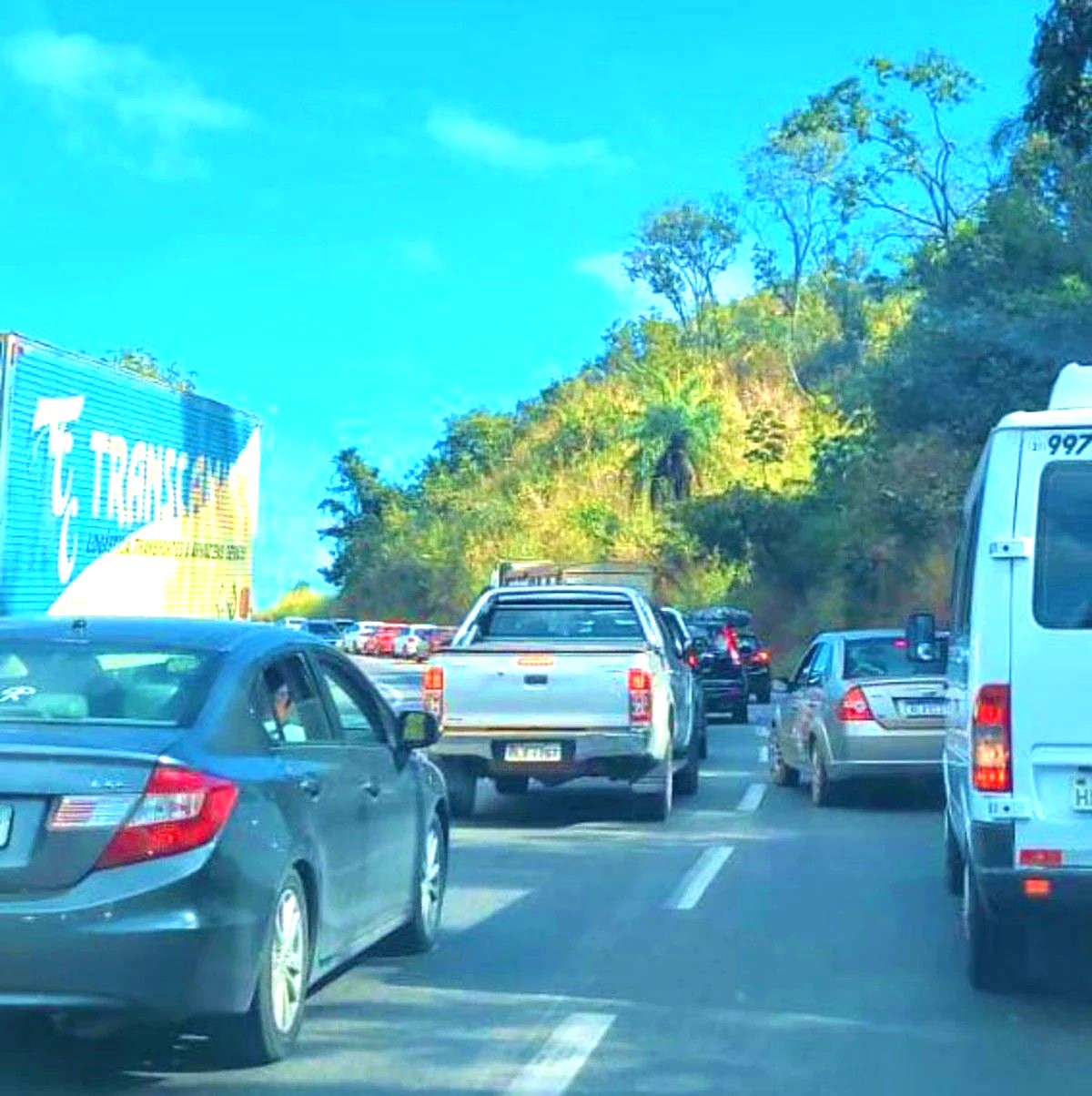 congestionamento de mais de 10 km é registrado entre Caeté e Belo Horizonte, na BR-381, durante a tarde deste domingo.