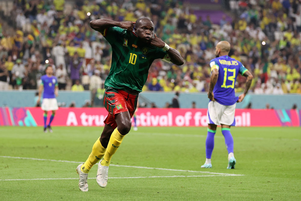 Aos 47’ minutos, o Brasil errou o passe e, em rápido contra-ataque, Camarões conseguiu abrir o placar. Mbakeli cruzou da direita e Aboubakar cabeceou no canto, sem defesa para Ederson. Na comemoração, Aboubakar tirou a camisa e tomou o segundo cartão amarelo, sendo expulso.